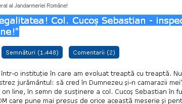 Petiţia:  „Susţinem legalitatea! Col. Cucoș Sebastian – inspector general al Jandarmeriei Române!” – iniţiată de un ...