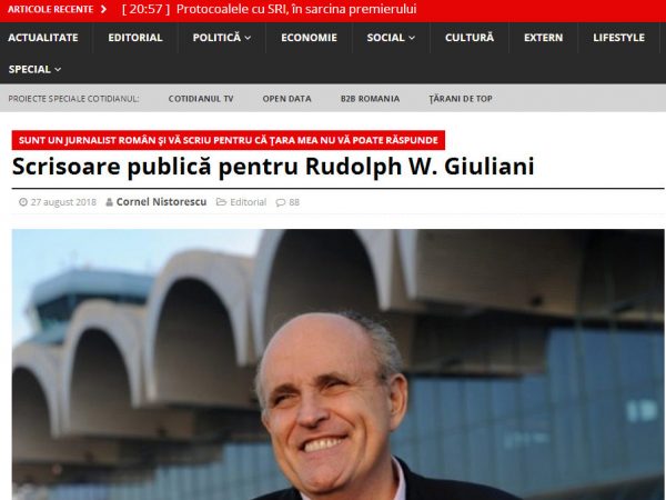 Cornel Nistorescu, directorul ziarul Cotidianul, îi transmite lui Rudolph Giuliani, avocatul lui Donald Trump, o scrisoare deschisă, în care vorbește...