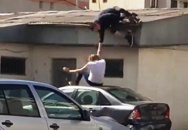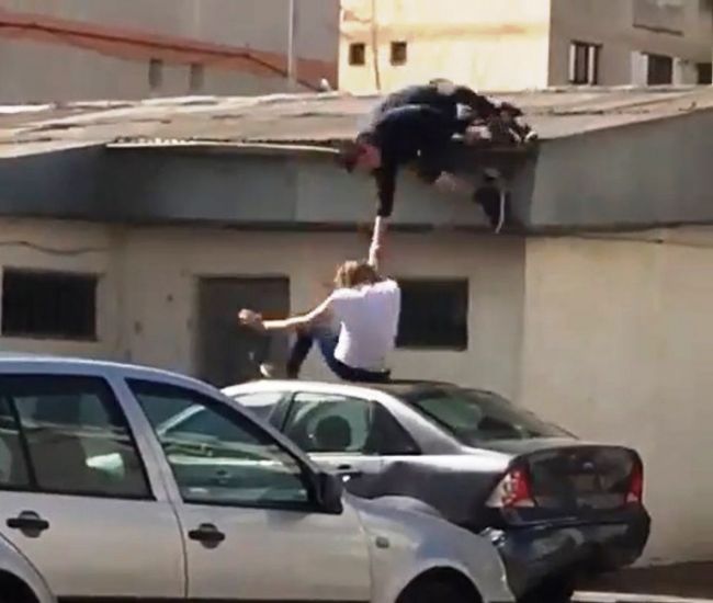 Doi tineri din Botoşani au încercat să monteze la propriu un video clip al unei trupe celebre de hip-hop. Unul s-a urcat pe garaj şi a căzut în cap. Încercările s-au repetat. S-au tras, cum s-ar zice, mai multe DUBLE.