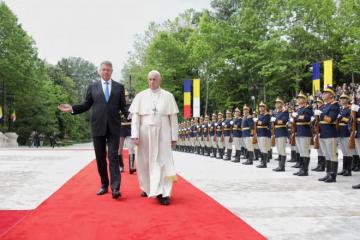 Ora 12:05. Ceremonia oficială de primire a Santităţii Sale va avea loc la Palatul Cotroceni.